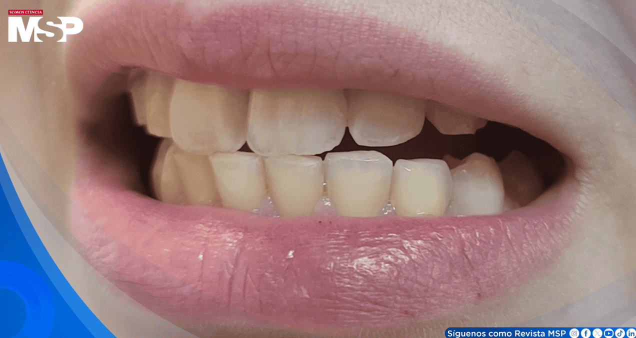 Un hallazgo importante durante la exploración fue la observación de un desgaste significativo en ambas arcadas dentales, compatible con bruxismo. Ante este descubrimiento, la paciente reconoció que desde hacía tiempo presentaba este hábito, tanto durante el día como mientras dormía.