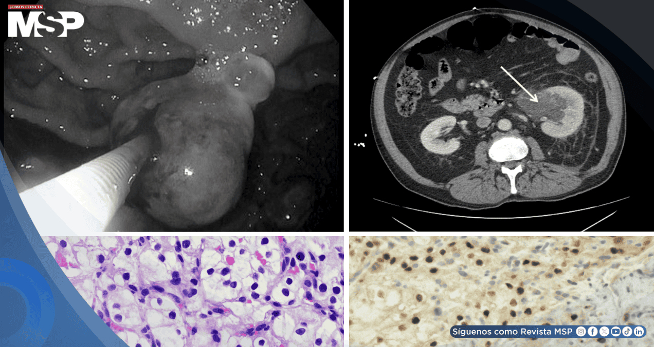 Este caso ilustra una situación muy rara pero crucial en medicina. Según Nikolaus Y, Sigdel S, el cáncer de riñón (CCRcc) muy pocas veces hace metástasis en el tracto gastrointestinal, y la localización en el estómago es excepcional.