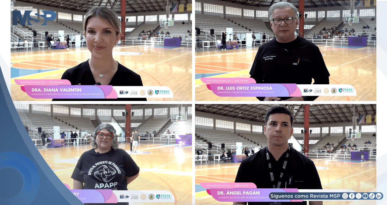 Entre ellos estaban la Dra. Diana Valentín, presidenta de la Sociedad Dermatológica de Puerto Rico; el doctor Luis Ortiz Espinoza, presidente de la Fundación Piel Puerto Rico; Margarita Irizarry, enfermera graduada y representante de la Asociación de Ayuda al Paciente de Psoriasis; y el doctor Ángel Pagán, residente de dermatología de PHSU.