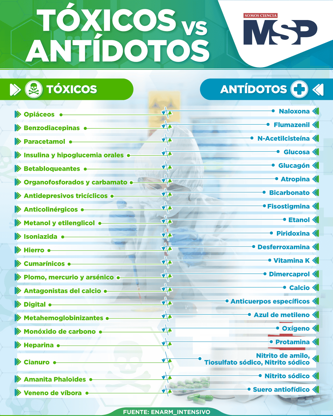 Conoce más sobre los tóxicos y antídotos con esta infografía que hemos preparado para ti.