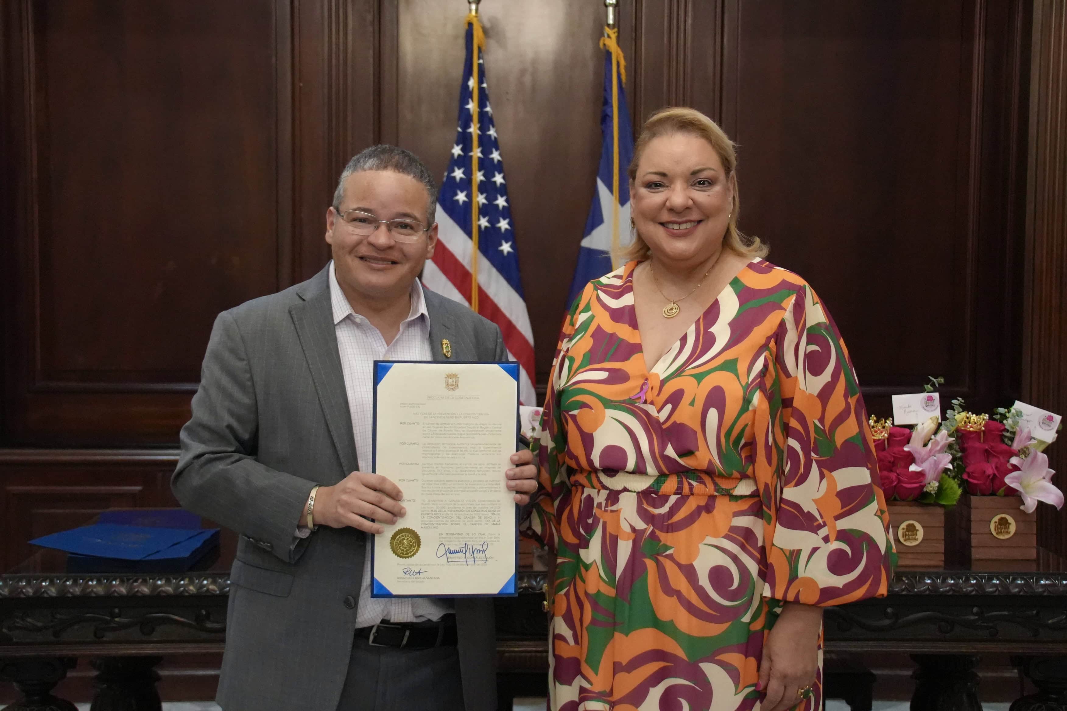 La gobernadora González Colón proclamó el mes de octubre de 2025 como "Mes de la Prevención del Cáncer de Seno en Puerto Rico", el 19 de octubre como "Día de la Concientización del Cáncer de Seno" y el segundo viernes de octubre como "Día de la Concientización sobre el Cáncer de Mama Masculino", reconociendo que aunque menos frecuente, esta enfermedad también afecta a hombres mayores de 50 años.